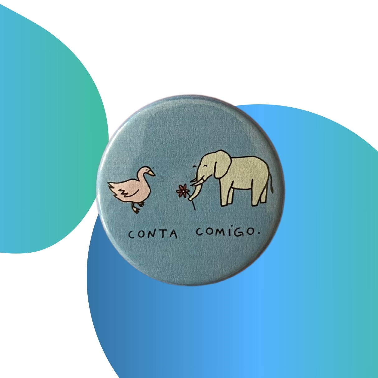 Mostre seu apoio com o Botton 35 MM Conta Comigo! Um acessório cheio de significado para expressar empatia e companheirismo no dia a dia. Perfeito para personalizar bolsas, jaquetas e outros itens, este botton combina estilo e propósito, sendo fabricado com materiais resistentes para maior durabilidade. Além de ser um item que transmite uma mensagem positiva, ao adquiri-lo, você também apoia as ações solidárias da ONG Por1Sorriso!